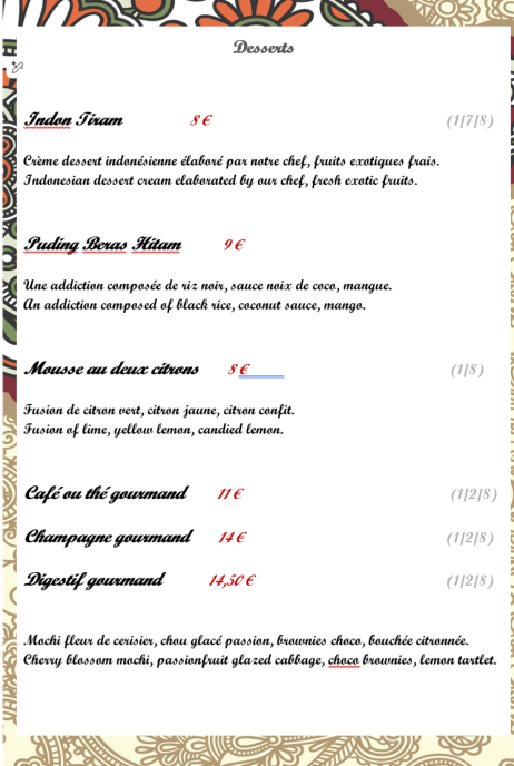 Crème dessert indonésienne, fruits exotiques frais.