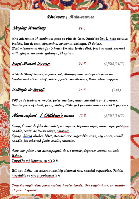 Bœuf, noix de coco fraîche, lait de coco, gingembre, curcuma, galanga, 21